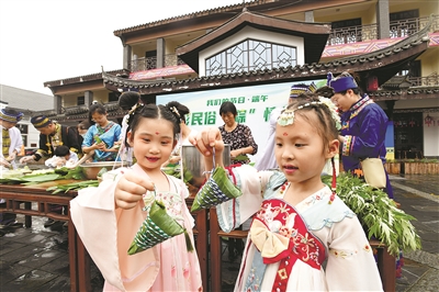 昨日,建德市洋溪街道在团结村举行“多彩民俗 ‘粽’情畲乡”迎端午活动。该街道的党员志愿者、畲族村民及孩子们相聚在村文化大礼堂门口,开展包粽子、做香囊、手工制作绿豆糕等多彩民俗活动。