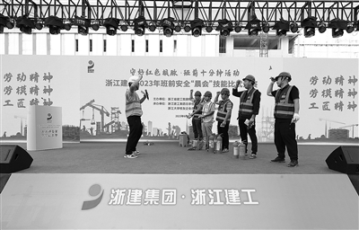 “我宣誓,人人讲安全……”近日,浙江省建工集团公司2023年班前安全“晨会”技能比武大赛,在浙江大学校友企业总部经济园二期项目工地举行。通过层层选拔,最终集团各项目工地800余名安全员中,有39人进入决赛。