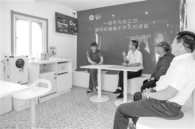 图为户外劳动者在“普工@家”白沙岛站休息纳凉。