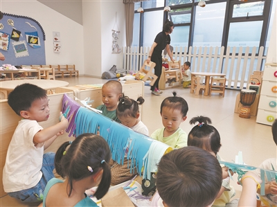 “这是杭州市首家产业园嵌入托育园,为解决会员职工孩子无人照护难题提供了经验和样本,还被全总办公厅、国家卫健委办公厅认定为2022年全国爱心托育用人单位。”杭州市拱墅区总工会相关负责人介绍,高新区由北部软件园、智慧网谷、北城智汇园等片区组成,聚集了大批以数字文创、数字服务为主导的企业,有职工1万余人。职工中50%以上为35周岁以下的青年,他们的孩子正值入托年龄。“为解决会员职工子女的托育问题,我们与杭州大运河数智未来城高新区管委会前期进行了大量走访,通过与企业、职工交流,准确掌握他们对托育服务的真实需求和期待。”该负责人说,职工希望托育服务能够“就近、可负担、有质量”,企业则希望通过优质的托育服务吸引人才、留住人才。