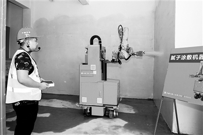 在智能建造及数智管理方面,该项目以数字化、智能化升级为动力,创新突破相关核心技术,加大智能建造在工程建设各环节应用,通过实测实量机器人、腻子打磨机器人、履带地面抹平机(地坪施工)等应用场景,推广应用智能建造,减少大面积人工重复劳动及人工施工时的观感参差不齐现象,可保证施工均质化。