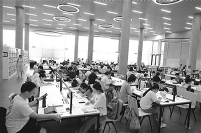 ▲每到暑期,作为避暑胜地”的图书馆,都会迎来“学生大军”。日前,在宁波图书馆新馆里,座无虚席,清凉的图书馆成为暑期学生的首选学习胜地。况且宁波图书馆新馆每天中午向读者开放餐厅,提供价格实惠的半自助午餐,不少家长很乐意将孩子送到图书馆里读书、学习。
