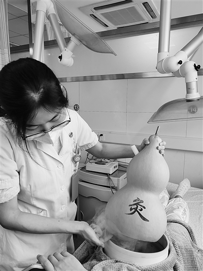 | 医生在操作葫芦灸。 记者王艳 摄 |