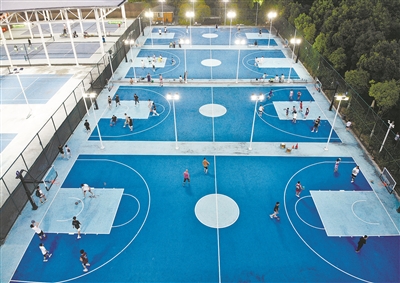 近日傍晚,群众在台州市路桥区桐屿街道生态体育公园打球健身。健身强体成了人们的自觉行为和良好习惯,酷暑夏日,群众利用早晚两个时间段加强体育锻炼,健身强体。