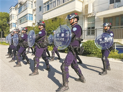 近日,海盐县公安局武原派出所的“轻装PTU”队员顶烈日、冒酷暑,开展警棍盾牌防御、反恐防暴等项目训练,以进一步提升快速反应和处置突发案事件的能力。通讯员沈晖 摄