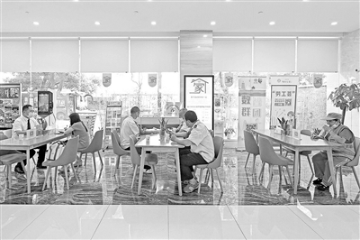 位于杭州市职工服务中心岳王路办事大厅的“爱心驿家”是新就业形态劳动者、户外劳动者温馨的“家”。午饭时分,负责岳王路和仁和路部分道路保洁工作的吴菊云走进“爱心驿家”,热饭、灌水、给手机充电,这里,是她最熟悉的地方,是她纳凉、歇息的首选地。“每天都要来两三趟,换电挺方便的。”换好电瓶,喝一口“爱心驿家”提供的凉茶,快递小哥何力匆匆赶去下一个取件点,他希望“爱心驿家”和换电柜能更多一些。