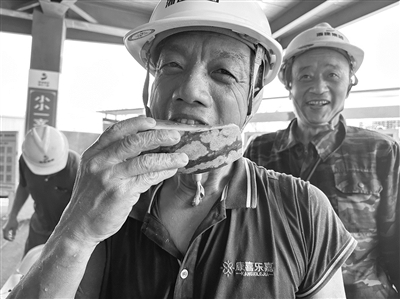本报讯 通讯员马敏报道 近日,在浙江三建杭政储出59号地块项目部“清凉驿站”凉茶亭里,陆续有工人来歇息、接水。一位工人大哥接过工作人员递上的西瓜,边吃边称赞道,“甜!真甜!”连日来,我省气温节节攀高,该项目部在凉茶亭内配备了凉茶、藿香正气水、人丹、电风扇等,为工人送上夏日“清凉”。