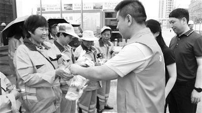 | 本报讯 记者潘仙德 通讯员杨钗灵摄影报道 连续的高温天气,台州市总工会积极发动共建单位以及公益志愿者等开展防暑降温服务工作,为广大劳动者们免费提供凉茶、矿泉水、清凉油、人丹、藿香正气水等防暑降温物资。截至7月13日,台州各级工会共建各类驿站275家。 椒江区总工会在365+劳动者驿站001号站、002号站等多个人流量较大的驿站设立了防暑站点,每个站点每天提供矿泉水、毛巾以及50份凉茶;仙居县总工会来到中铁九局集团(台州)建设工程有限公司仙居高铁新城第五项目部户外劳动者驿站,为片区附近的货运司机、环卫工人、网约送餐员等户外劳动者送上雨伞、帽子、矿泉水、毛巾及应急药品等;黄岩区总工会联合黄岩出租车联合工会,对全区出租车、网约车司机进行高温慰问,送上防暑药品、解暑点心。 据了解,台州各级工会在做好防暑降温工作的同时,还将利用服务站点开展综合服务活动,免费为户外劳动者提供理发、法律咨询、心理服务等,切实提高户外劳动者的获得感和幸福感。 仙居县总工会工作人员为户外工作者送上矿泉水、毛巾等防暑用品。 |
