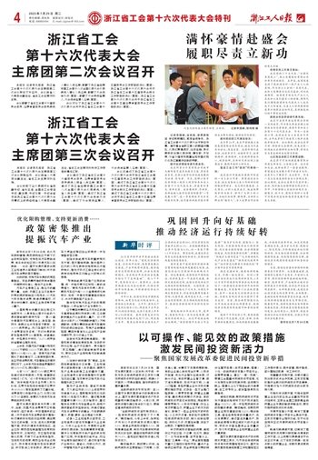 浙江省工会 第十六次代表大会主席团第三次会议召开