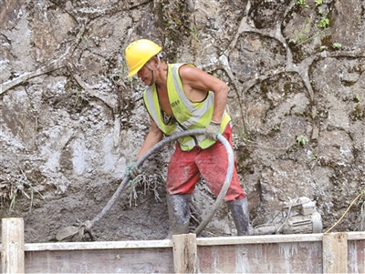 炎炎夏日,开化油古线16K+480路段,开化县公路港航与运输管理中心养护人员正在加固挡墙基础。此前,这里的挡墙被洪水冲毁,影响通行安全。连日来,该中心抓住晴好天气,组织人员和机械克服高温抓紧施工,预计整个工程将于8月初完工。