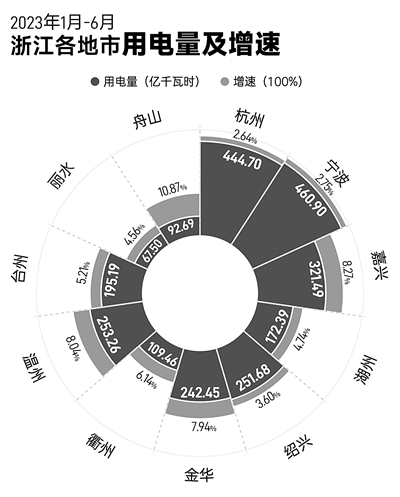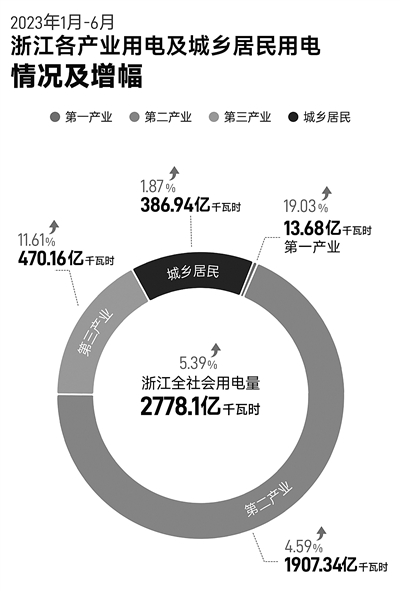 2023年,时间过半,浙江经济社会发展情况如何?电力数据是反映经济运行的“晴雨表”“风向标”,上半年,浙江全社会用电量2778.1亿千瓦时,同比增长5.39%,较全国平均增速高0.4个百分点,这释放了什么信号?