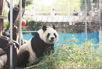 | 昨日,在温岭熊猫馆,大熊猫“欢欢”开心地吃着生日美食。 当日,熊猫馆工作人员和粉丝们为“欢欢”准备了生日美食, 并举行庆祝活动。 大熊猫“欢欢”2007年8月14日出生于四川卧龙中国大熊猫研究中心雅安碧峰峡基地, 曾在2008年北京奥运会期间赴京展示。“欢欢”2010年1月11日落户温岭,目前体重130公斤,健康状况良好。 通讯员周学军 林绍禹 摄 |