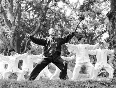 太极拳是以太极哲理为依据,汲取传统养生和技击智慧而编创的一种武术,是中国优秀传统文化由里及外的形体表达,既能增强体质,又能修身养性。