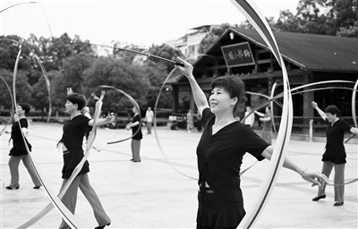 日前,在武义县梅郎山公园,市民开心地舞起彩带,不仅愉悦了心情,还舞出了健康生活。
