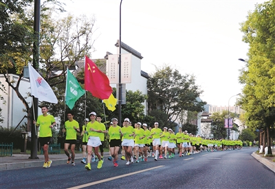 昨日上午,杭州市余杭区闲林街道总工会举办“百名职工迎亚运”健身跑活动,兴起喜迎亚运、全民健身的热潮。