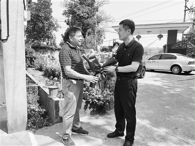 | 衢州市总工会党组书记、常务副主席郑小龙慰问全国劳模夏汝清。 |