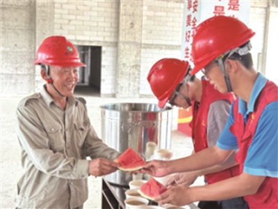 活动现场摆上了西瓜和冰镇绿豆汤,慰问人员详细询问了工友们的工作与生活情况,叮嘱大家提高防暑和安全意识,确保以良好的状态投入工作。 姚泽南