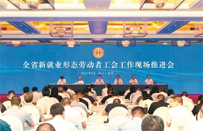 本报讯 记者曾晨路报道 8月29日至30日,全省新就业形态劳动者工会工作现场推进会在温州召开。会议深入贯彻落实党的二十大精神和省委、全总工作部署,总结交流今年以来全省新就业形态劳动者工会工作情况,研究部署当前和今后一个时期工作任务,深入扎实推进三年行动计划。省人大常委会副主任、省总工会主席刘忻在会上强调,全省各级工会要以“干就干出一流,当就当好排头”的首位意识,不断推动新就业形态劳动者工会工作迈上新台阶,在深入实施“八八战略”、以“两个先行”打造“重要窗口”中发挥浙江工会的示范引领作用。