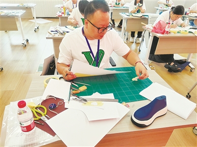 | 参赛选手正在为鞋的结构设计进行样板制作。 |