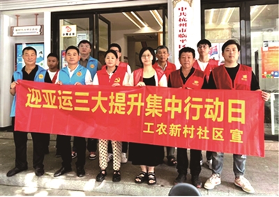 良好风貌迎亚运。近日,杭州临平区临平街道工农新村社区联合物业及志愿者,共同开展了“迎亚运三大提升”全民清洁日活动。