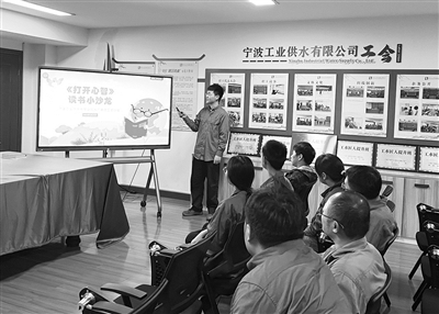 宁波市水务环境集团工会主席宋飒英说:“读书是好事,但现在许多职工忙于工作与生活,很少能静下心来读书,所以我们要充分考虑职工的实际情况,将工作和生活、理论和实践、输入和输出、线下和线上充分融合,让职工主动地愿意参加,从中感受到获得感和幸福感。”