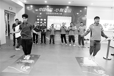 本报讯 记者李国峰 通讯员陈富华摄影报道 连日来,杭州亚运会各比赛项目如火如荼开展。在舟山电信公司工会的“亚运打卡驿站”,全市近40名跳绳爱好者正一起参加跳绳嘉年华活动。