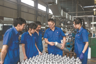 事实上,王为明也曾经被难题压得喘不过气来。“多年前,公司接下了一个铝合金气瓶的订单,也让我真正体会到了什么叫卡脖子技术。”王为明说,当时这个项目卡在了气瓶壁厚尺寸控制。为了攻克这个难题,材料用掉了十几吨,日复一日反复试验,却没有一点进展。外聘工程师劝他放弃,但王为明选择了坚持,他给自己制订了一张作息时间表:早上7时到晚上12时,是他的攻关时间。在这道工艺上一遍遍磨、一点点悟,最终参透了其中的奥秘。“寒冬过后终将是明媚的春天”,他坚信这个道理,也终于迎来了属于自己的春天。