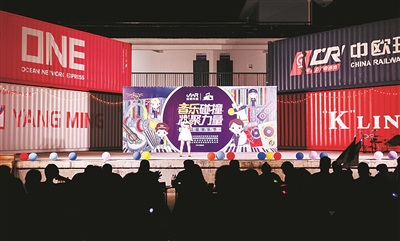 9月26日晚,在《杭州亚运,等你来》的开场舞中,浙江交通集团永康东站首届集装箱音乐节激情开唱。货场上,被涂成红、粉、橙、蓝、白等颜色的集装箱组成了舞台,百余名职工及家属齐聚于此,共迎中秋、国庆双节的到来。