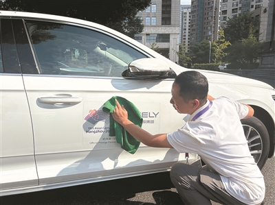 “我很荣幸能为杭州亚运服务,这是我个人的荣耀,也是网约车司机这份职业的荣光。”原永辉告诉记者,是杭州让他产生了对网约车司机这一职业的认同感。“我们每一个微笑、每一个动作都向世界展示浙江形象,我会与队员们一起让每一位坐上车的乘客满意。”