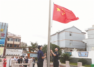 昨日上午,地处东海之滨的温岭松门镇石板殿村举行升国旗仪式。温岭海事处的执法人员与当地村民一起参加仪式,共同祝福伟大祖国更加繁荣昌盛,祝愿人民生活更加幸福美好。
