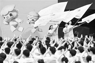 | 杭州亚运会、亚残运会赛会志愿者在出征仪式上。 |