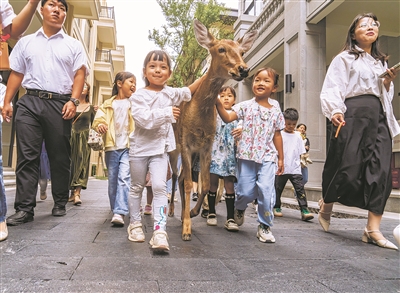 “双节”期间,衢州市区鹿鸣山文化院街,每天上演梅花鹿巡街的“嘉年华”,给市民尤其是孩子们带来了节日欢乐。据悉,这里的鹿舍引进了20多只梅花鹿,最大的两岁左右,最小的才四五个月。