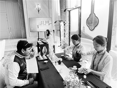 | 沈黎明茶艺技能大师工作室成员,在多家亚运会定点酒店接待外宾,展示中国茶文化。 |