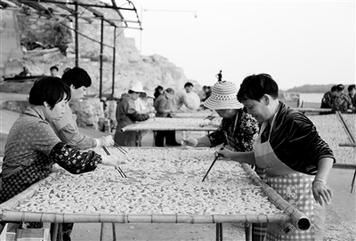 眼下正值秋高气爽的季节,在台州玉环市东沙海边的虾米晾晒场,当地渔家女将刚剥好的新鲜虾仁摊铺在网帘上,待其自然风干后,加工成风味独特的虾米,或馈赠亲友,或上市售卖,成为秋日里独特的景观。