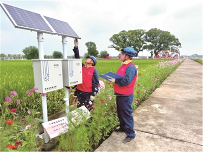 “马上秋收了,到时田园里无人收割机满地跑,农灌线路负荷成倍增长,我们可得做好电力保障嘞!”看到寀卢村村民围观问询,电力职工楼新成解释起小小螺帽测温装置的“大用处”来。