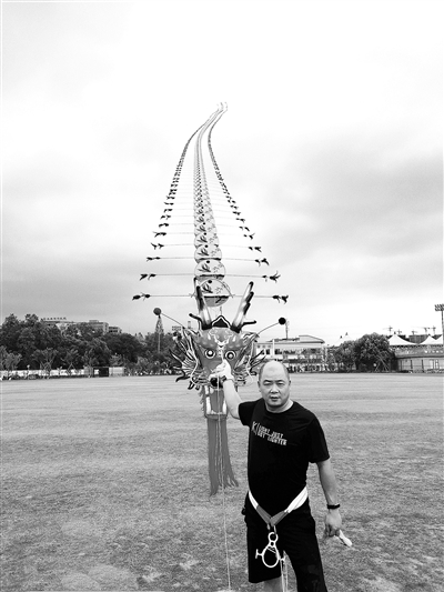 小时候,他们都有过做普通风筝的经验,但是要做巨型风筝,肯定跟普通风筝不一样。他们最先挑战的是88米的龙形风筝。