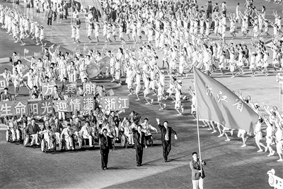 作品镜头语言丰富、立体、生动,极富神韵,充满力量,既有对运动场景宏大的时代叙事,还有对运动员挑战极限细腻的神情捕捉,比如少了支点的跳高运动员,如飞翔般展开双臂;嘴“握”球拍的乒乓球运动员回球时,眼神坚定;轮椅上的篮球运动员抢到球时的自信目光……其中,不乏有“劳伦斯世界体育大奖”获得者,以及残奥会、亚残运会等冠军获得者的珍贵比赛场景。作品充分展现了残障运动员身残志坚、挑战自我的精神力量,更是传达着体育运动在他们身上迸发的生命之美。