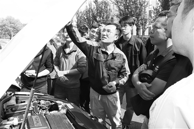 “蓝领成才”行动是钱塘区总工会的一个品牌项目。截至2022年底,区总工会投入到“蓝领成才”工程的专项资金累计已超3500万元,惠及职工28万人次,培养各类技能人才3.9万余名。图为授课老师正为学员们讲解汽车维护保养等知识。