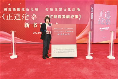 | 戚丹丹在浙能集团职工原创报告文学《正道沧桑——浙江能源发展纪事》新书发布后拍照留念。 |
