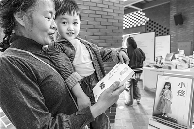 | “孩子虽然还不识字,但从小带他体验读书氛围,培养读书习惯很重要。”衢州市民董政华带着2岁的孙子来逛书展。通讯员胡江丰 摄 |