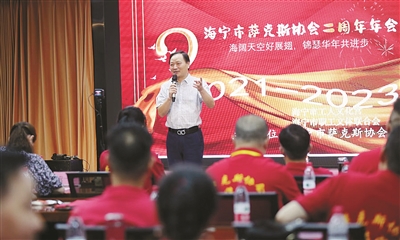 | 朱耀明在职工萨克斯协会年会上发表感言。 受访者 供图 |