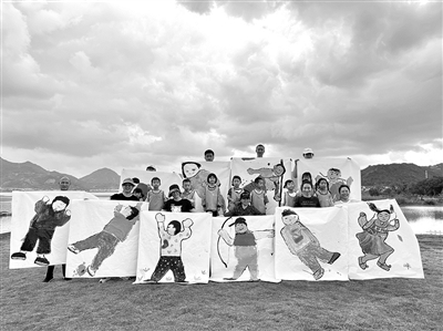 日前,台州市路桥区总工会在飞龙湖开展“流动工人文化宫”系列活动之“与颜色对话 寻找另一个自己”职工亲子户外活动。活动中,孩子们躺在画布上摆动作,家长们描绘出来。最后,职工及其子女一起展示画作并合影,大家脸上洋溢着欢快的笑容。