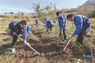 11月22日,学生在赵家镇花明泉村明乐果业实践基地帮助果农晒香榧。