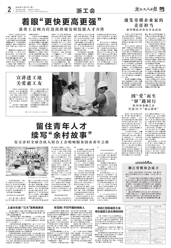 本报讯 记者金钧胤摄影报道 近日,由省建设建材工会主办,中建三局集团(浙江)有限公司工会承办的“送宣讲进工地 送关爱惠民工”活动在杭州18号厂房(和达智谷)项目部举行。