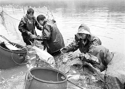 日前,渔工在武义县南塘水库拉网捕鱼,一网拉上1.5万公斤活蹦乱跳的鲢鱼、草鱼、鳊鱼、鲫鱼、翘嘴。进入冬季,大面积推广水库、山塘清水养殖的武义县,养殖户陆续拉网冬捕、干塘抓鱼,处处是人欢鱼跃的丰收景象。