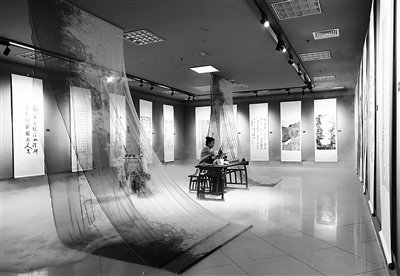 一幅幅精美作品在“云雾缭绕”的空间里展出。 记者邹伟锋 摄