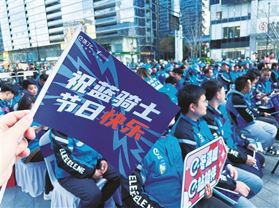 本报讯 记者寿慧桢摄影报道 他们每天奔走在城市的大街小巷,为人们传递着便利与温情,成为城市中一道亮丽的风景线。昨日,他们迎来了属于自己的节日——首届饿了么杭州“蓝骑士”节。