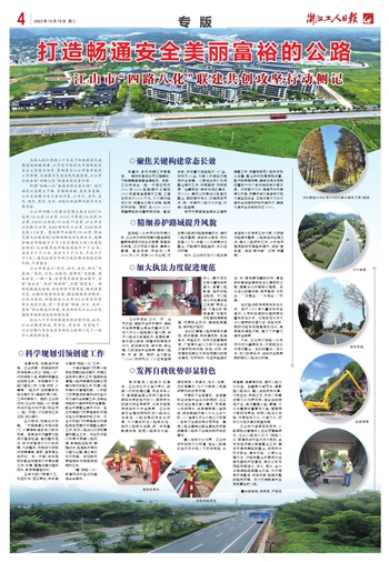 另外,江山市还加大公路日常保洁和小修保养工作力度,及时做好路面平整度、公路保洁作业等工作,强化公路养护工作,分步有序推进路域环境品质提升,消除“脏乱差”,保证“畅安舒”,实现“绿富美”。