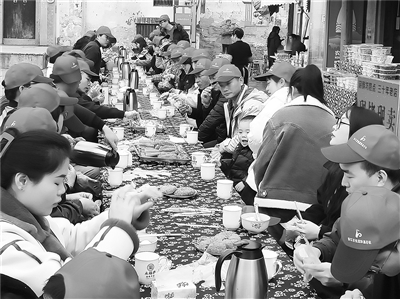 图为外来职工品尝游埠早茶。