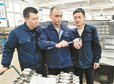 “师傅身上那种孜孜不倦、精益求精的精神,是我永远努力的方向。”吴育松说,一次,对防爆电磁阀技术创新改进的试验,因为客户的使用介质温度为-40℃~60℃,阀门泄漏量为0,关阀后介质不能倒流,这样的工况已经超出电磁阀正常技术参数,普通的电磁阀就不能满足要求。吴育松回忆说:“那段时间,师傅把车间当成家,一门心思扑在这项技术创新上,分析、模拟场景、阀塞表面处理、加工精度等,师傅都是亲力亲为,一丝一毫也不放过。”最终,功夫不负有心人,经过师徒大半个月的共同努力,该产品在特种设备检测院进行-40℃温度情况下,持续4小时的性能检测,各项性能指标全部符合要求,目前该产品已投入应用。